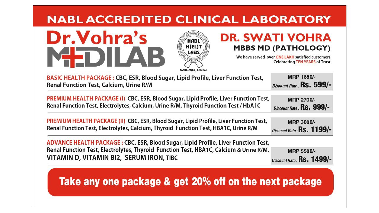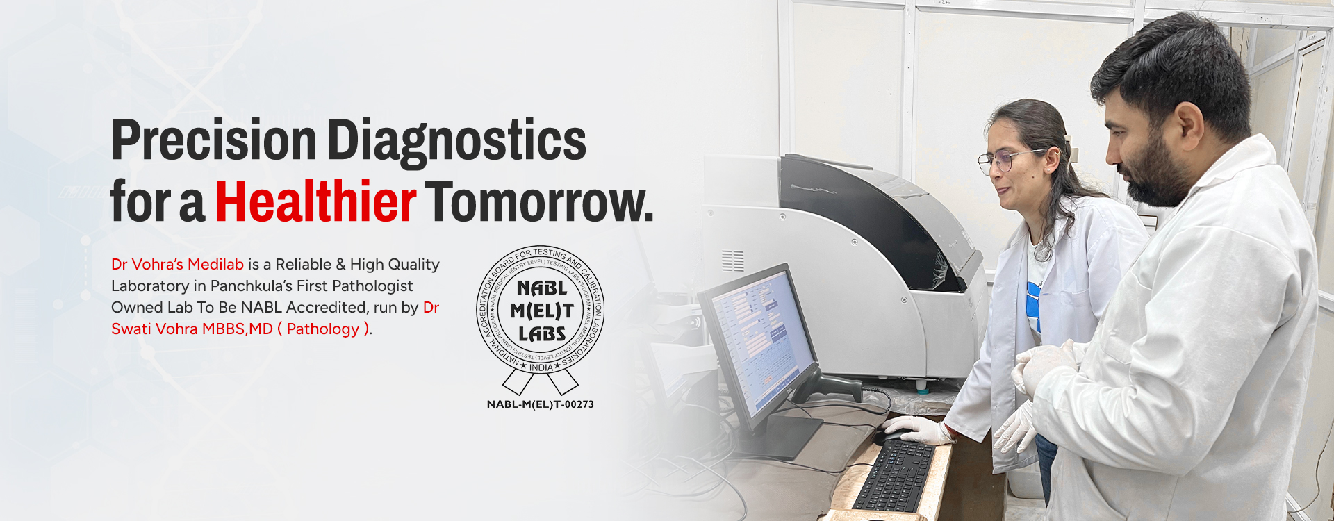 Dr Vohra’s Medilab is Panchkula’s First Pathologist Owned Lab To Be NABL Accredited, run by Dr Swati Vohra MBBS,MD ( Pathology ).NABL Accreditation provides a ready means for patients to find reliable testing services.